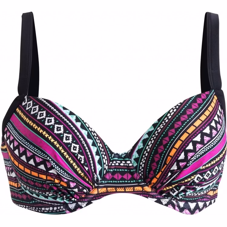 Bikinitopp i härligt mönster och fina färger i omtyckt modell. Bikini-BH med stöttande bygel och vadderade kupor som formar bysten och ger en fin klyfta. Smala och reglerbara axelband för en perfekt passform och smidig knäppning i ryggen. Bikinin är tillverkad i snabbtorkande och stretchigt material.